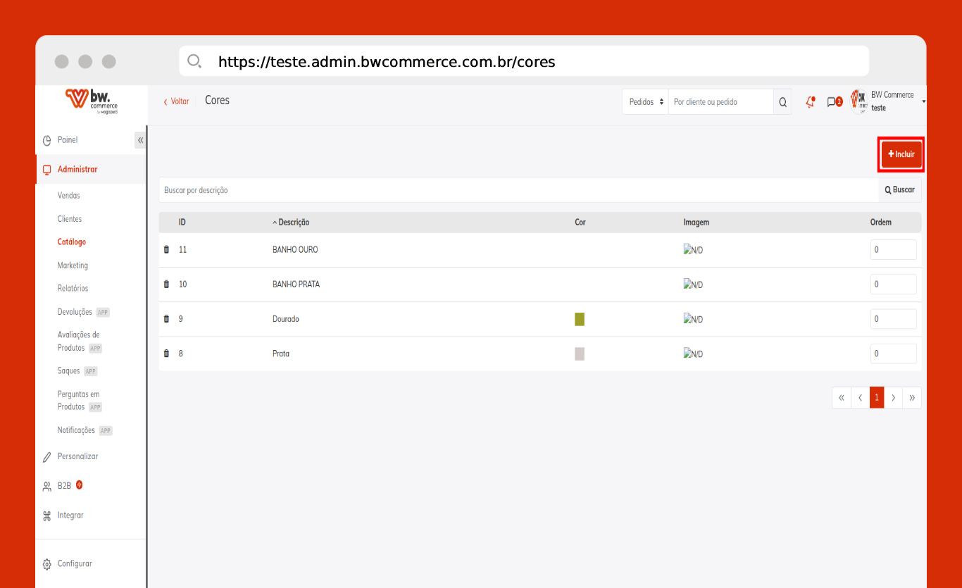 Passo 02) Para cadastrar uma nova cor, clique em Incluir: