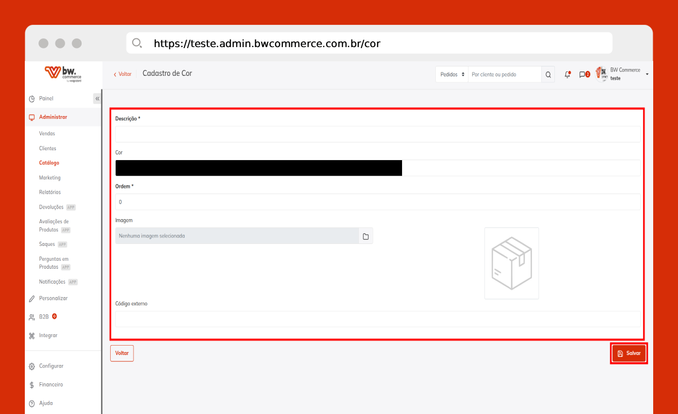 - Descrição: Nome da cor que será exibida na loja virtual.