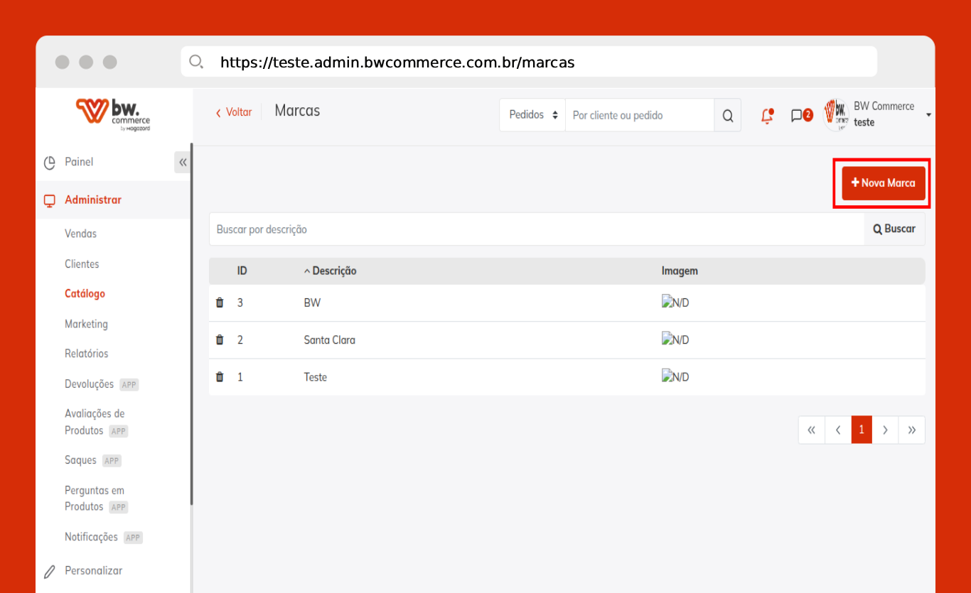 O cadastro de marcas é utilizado para melhorar a filtragem de produtos em sua loja. Ela permite que o cliente clique sobre a marca em específico para buscar apenas os produtos vinculados a ela.
