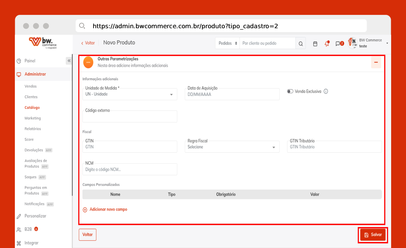 - Preço de venda*: Inclua o preço que seu cliente pagará pela mercadoria.