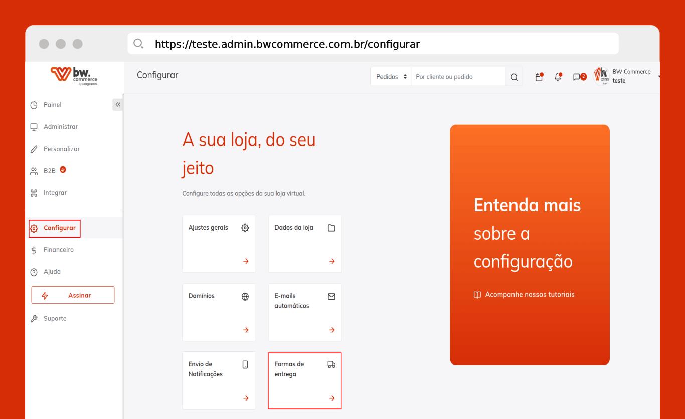 Passo 01) Acesse o painel administrativo da BW Commerce e selecione Configurar > Formas de Entrega.