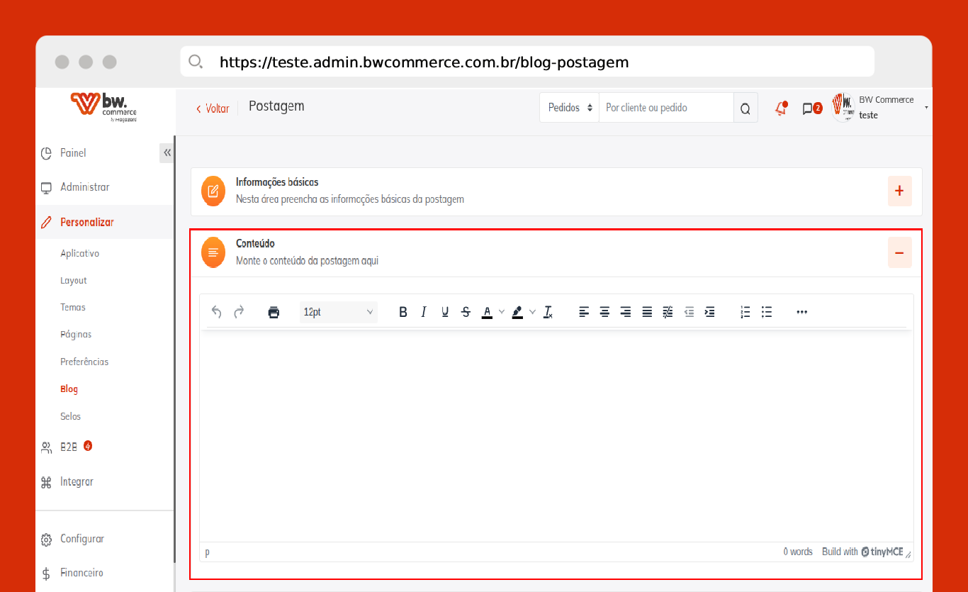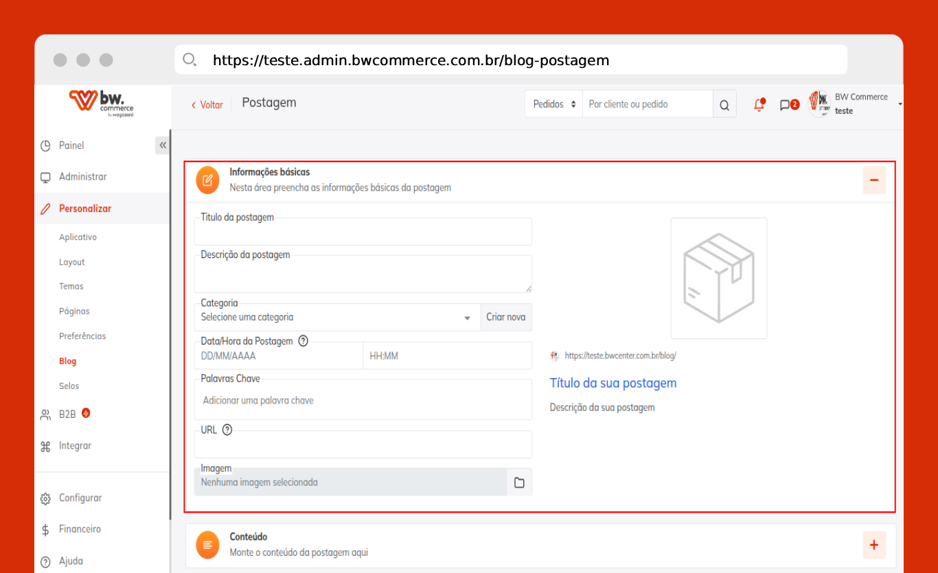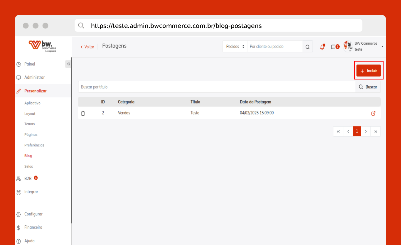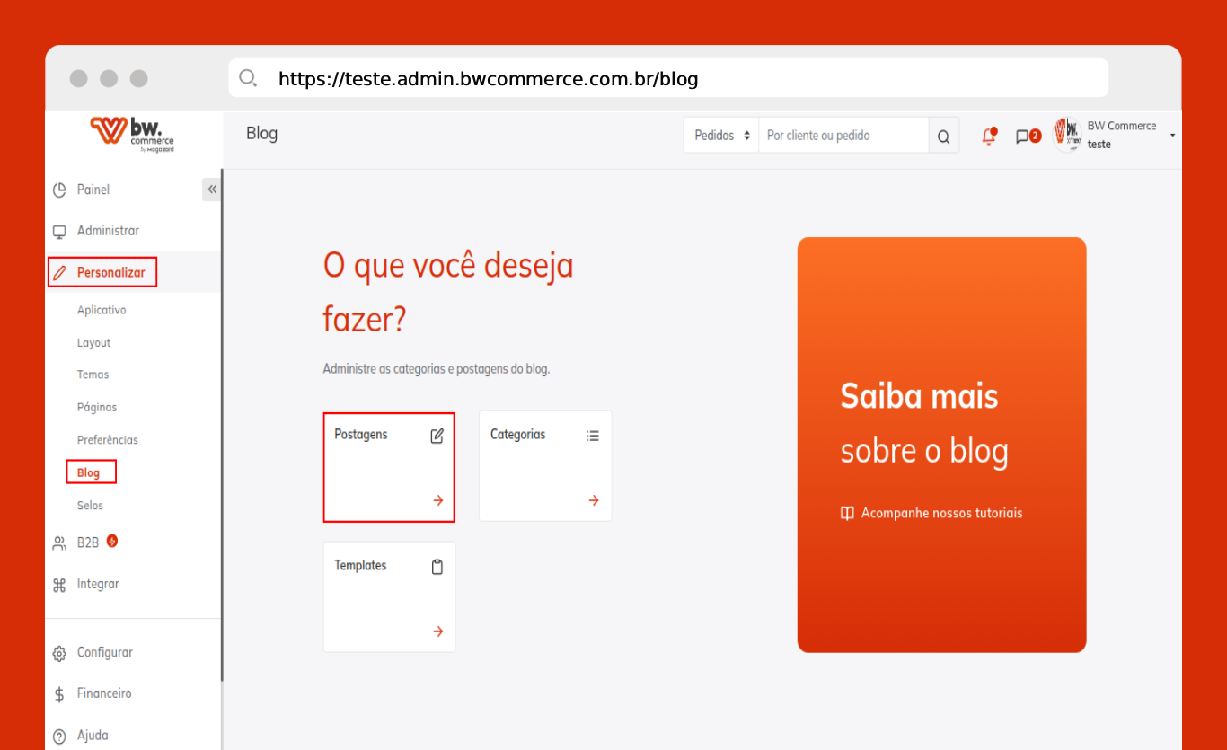 Siga os passos abaixo para configurar o blog em sua loja virtual: