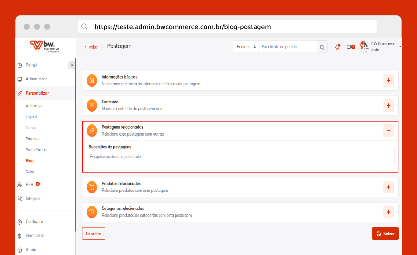 Tudo isso é possível através do recurso de Blog da BW Commerce. Você consegue publicar notícias sobre o seu negócio, novidades dos produtos, suas campanhas, e claro, deixar seus clientes sempre informados sobre seu negócio.