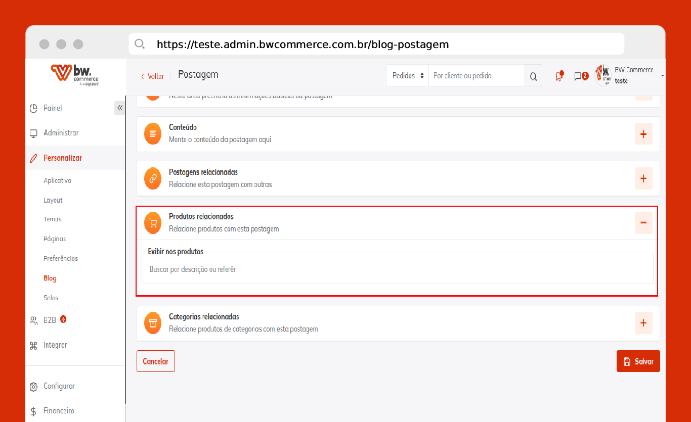 Passo 10) Você pode também relacionar os produtos de categorias com esta postagem que está sendo criada.