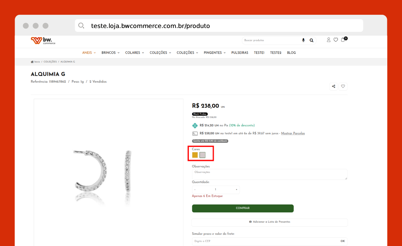 Siga os passos abaixo para exibir a imagem de acordo com a cor do produto: