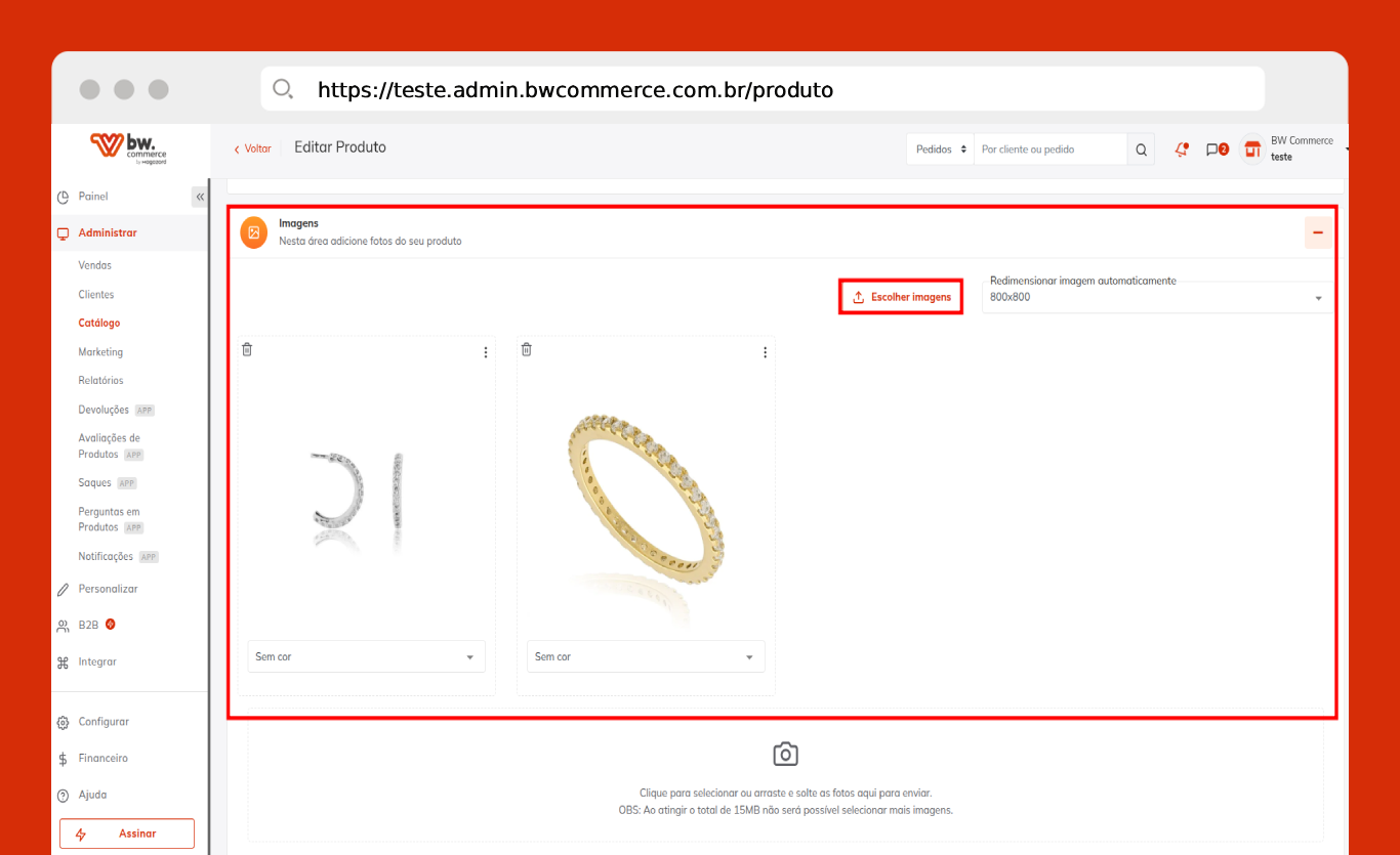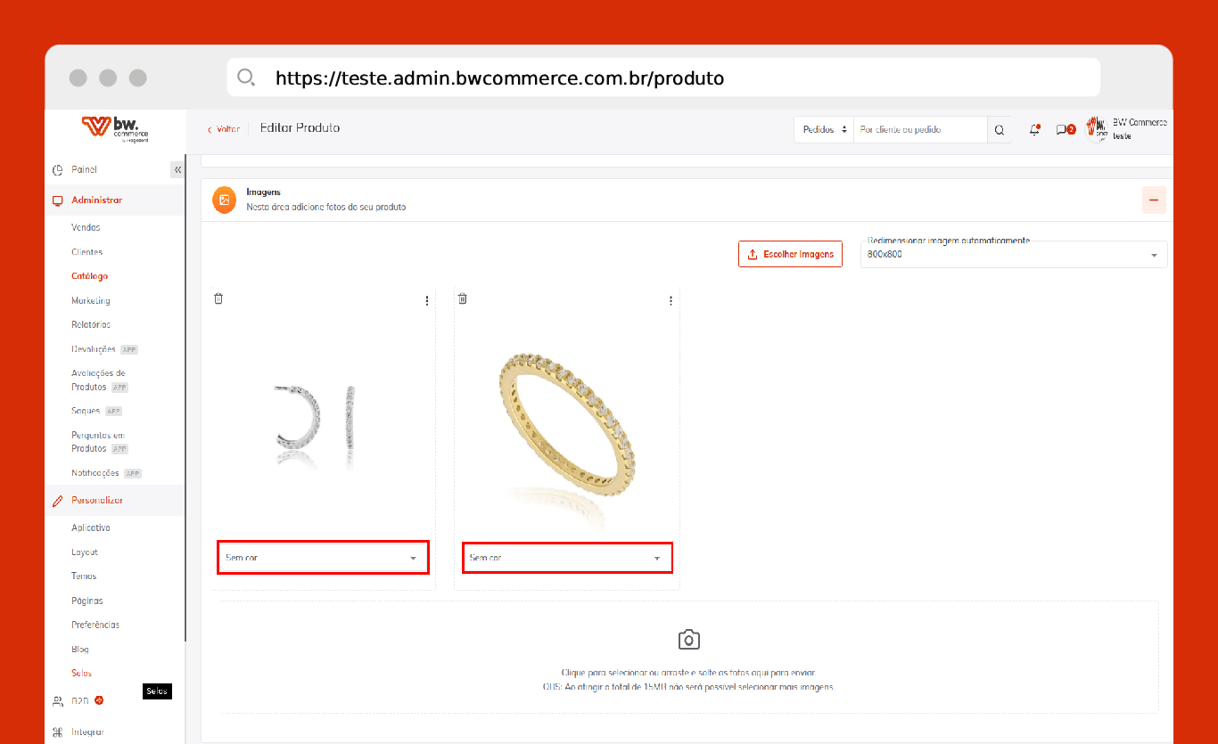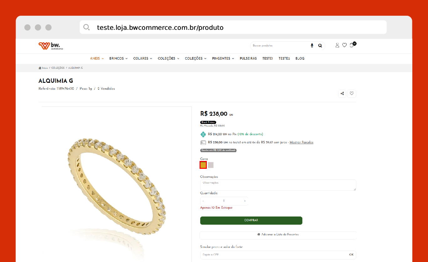 - Imagem: Selecione a imagem de acordo com a cor. Ex: anel dourado, foto do anel na cor dourado.