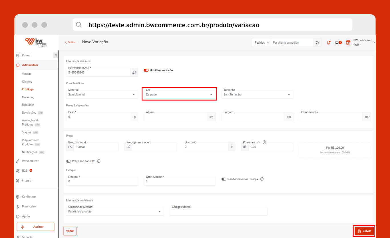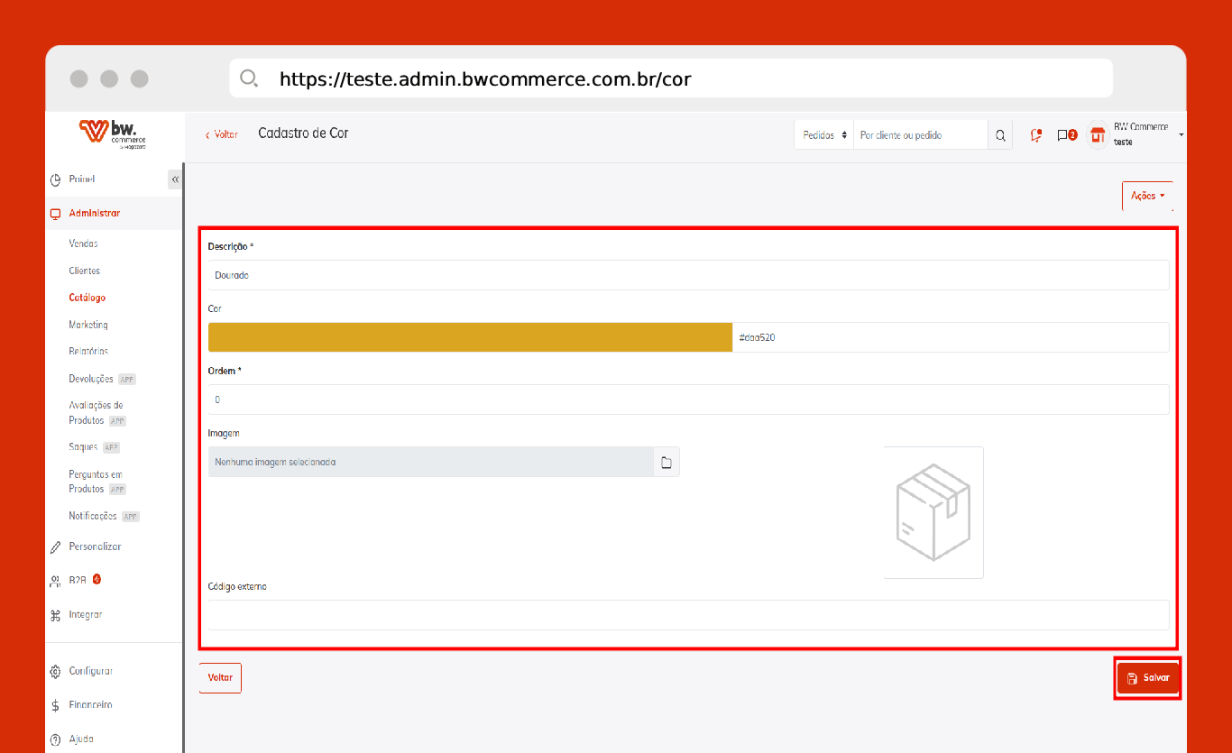 - Descrição: Nome da cor que será exibida na loja virtual.