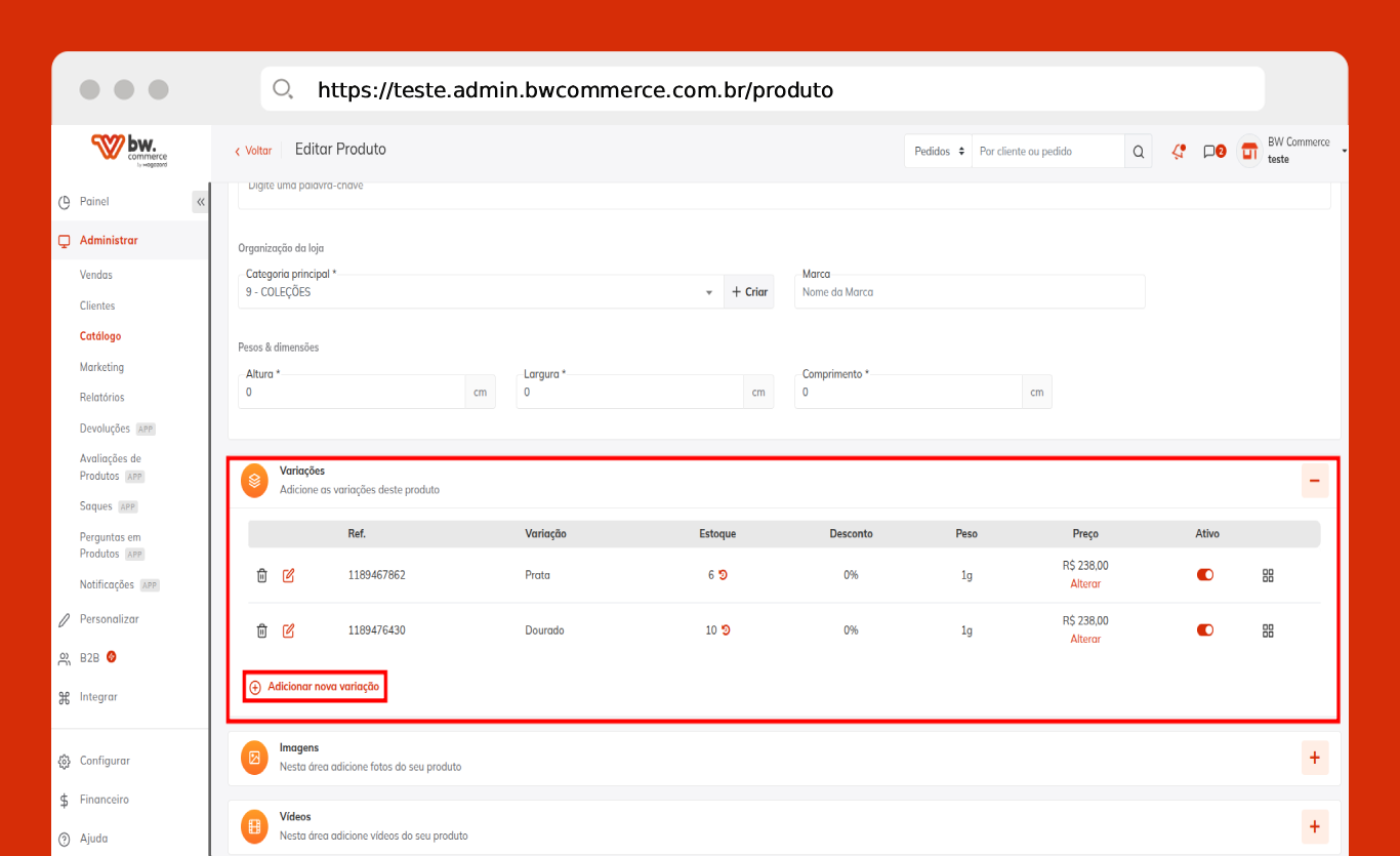 Passo 07) Vá até Variações > Adicionar nova variação.