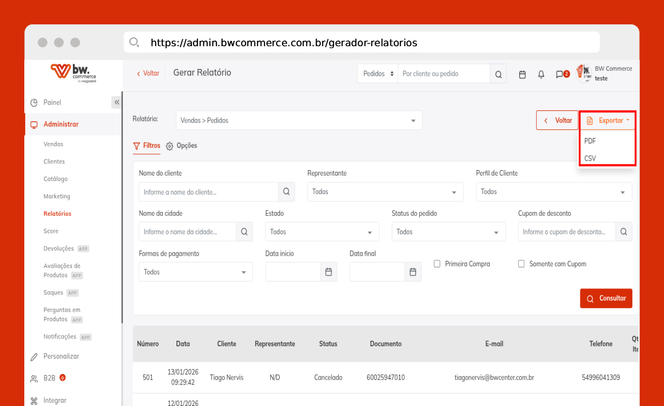 Siga os passos abaixo para gerar relatórios da sua loja.