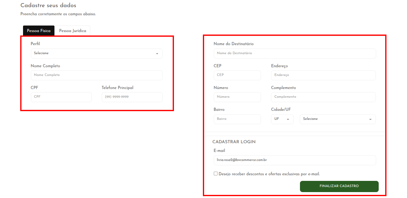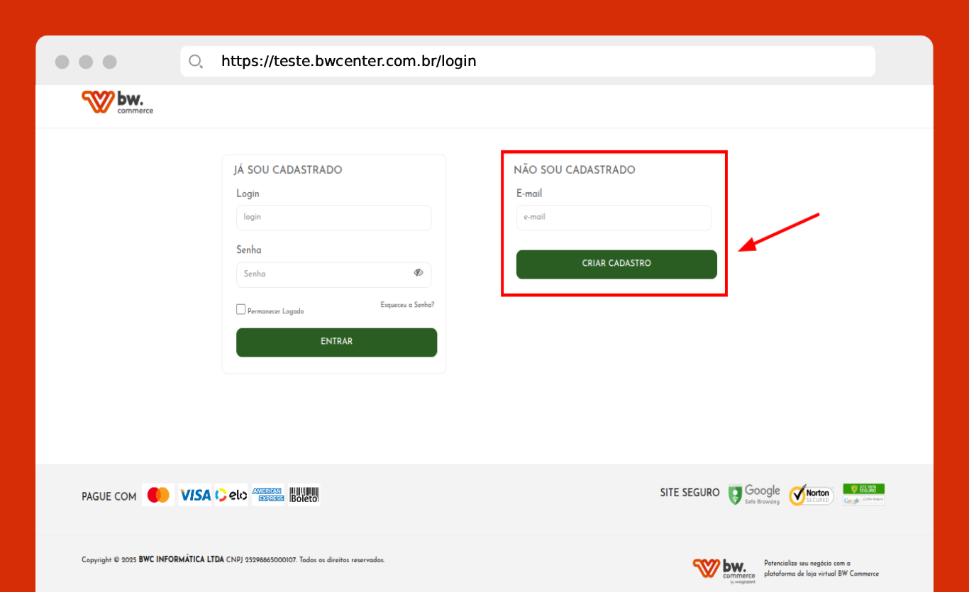 Clicando no botão Criar Cadastro.