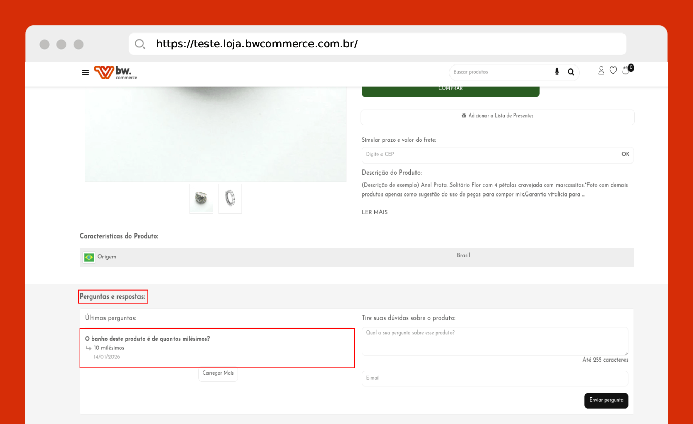 Essas perguntas permitem que os clientes esclareçam suas dúvidas antes de finalizar a compra, além de auxiliar outros compradores a tomarem decisões mais seguras e informadas com base nas informações já respondidas.
