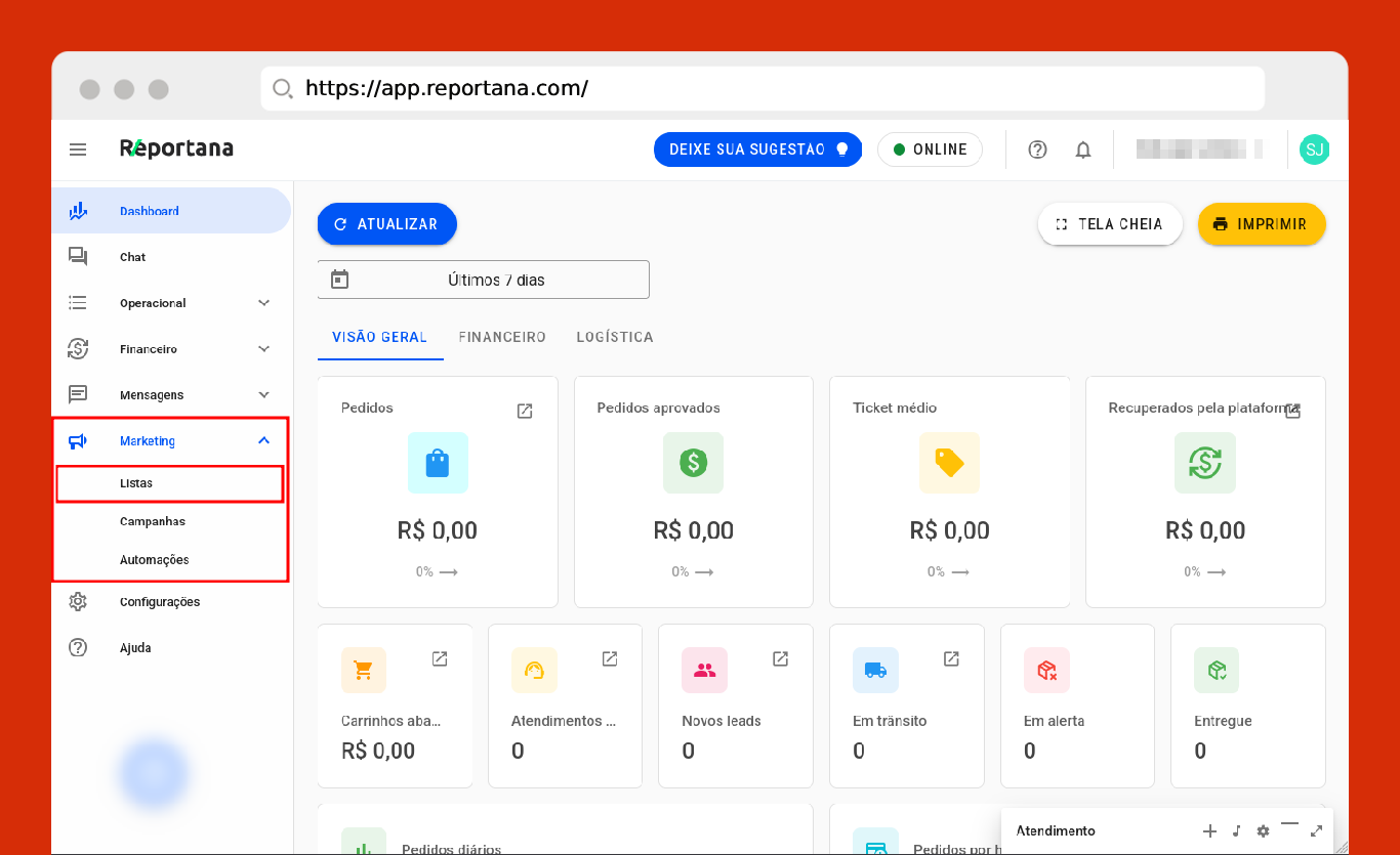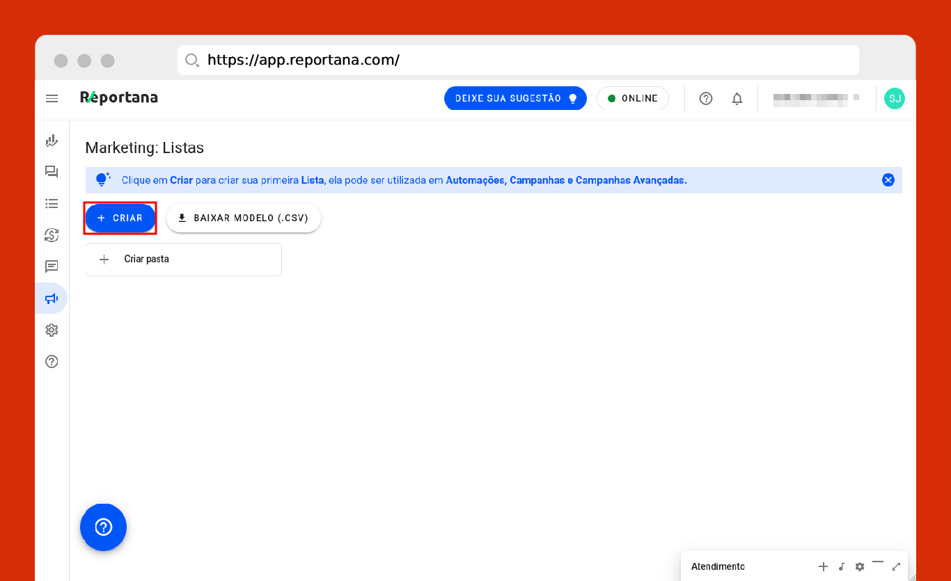 Passo 6) Após finalizar o passo anterior, no menu principal, acesse Marketing > Listas :