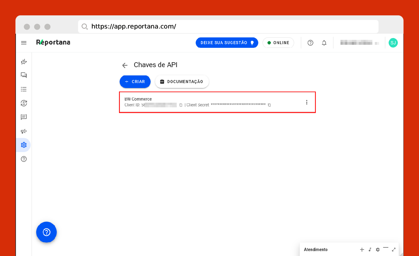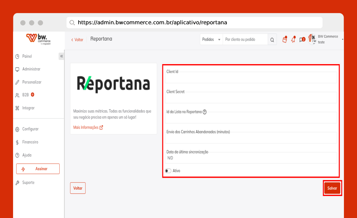 Após finalizar o processo dentro do painel da Reportana, acesse o painel da BW e siga os próximos passos para concluir a configuração da integração: