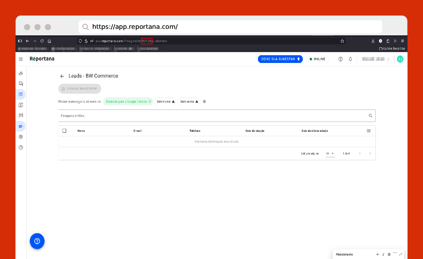 Passo 10) Na página que será aberta, observe a URL do navegador, copie o ID presente após /segments :