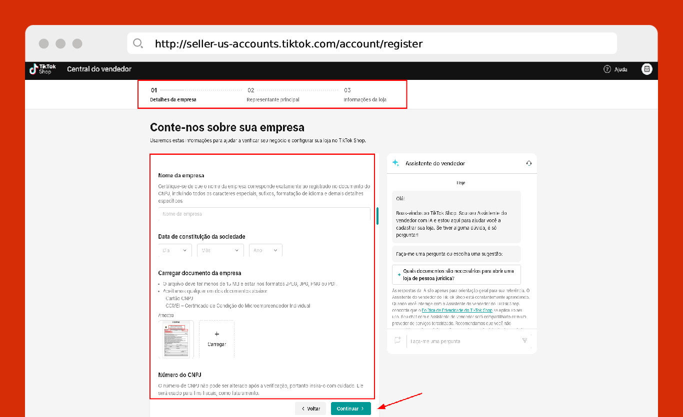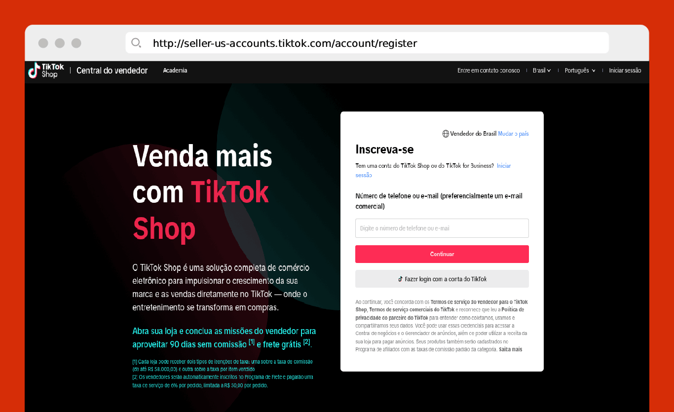 Passo 01) Acesse o Portal de Vendedores do TikTok Shop e inscreva-se.