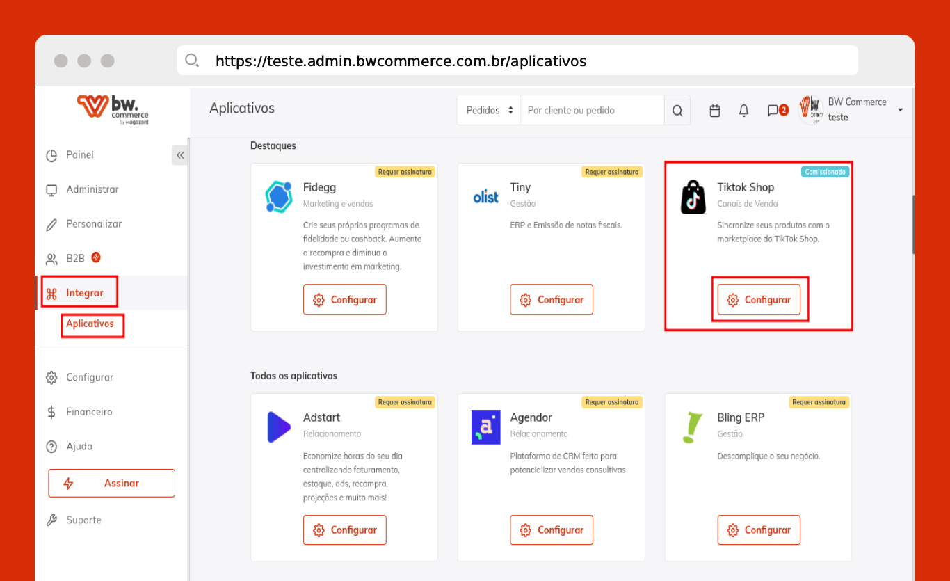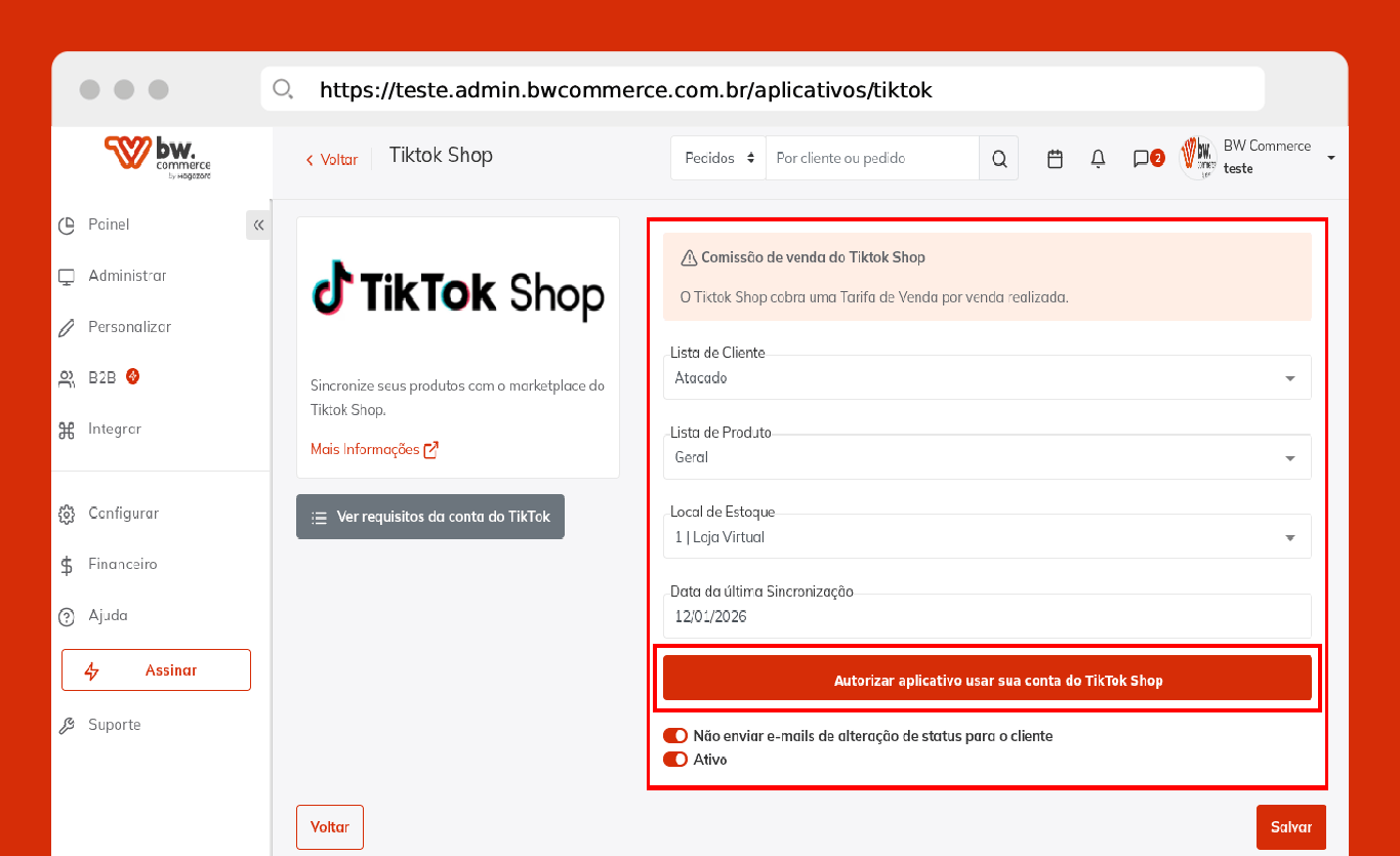 A integração da BW Commerce com o Tiktok Shop possibilita: