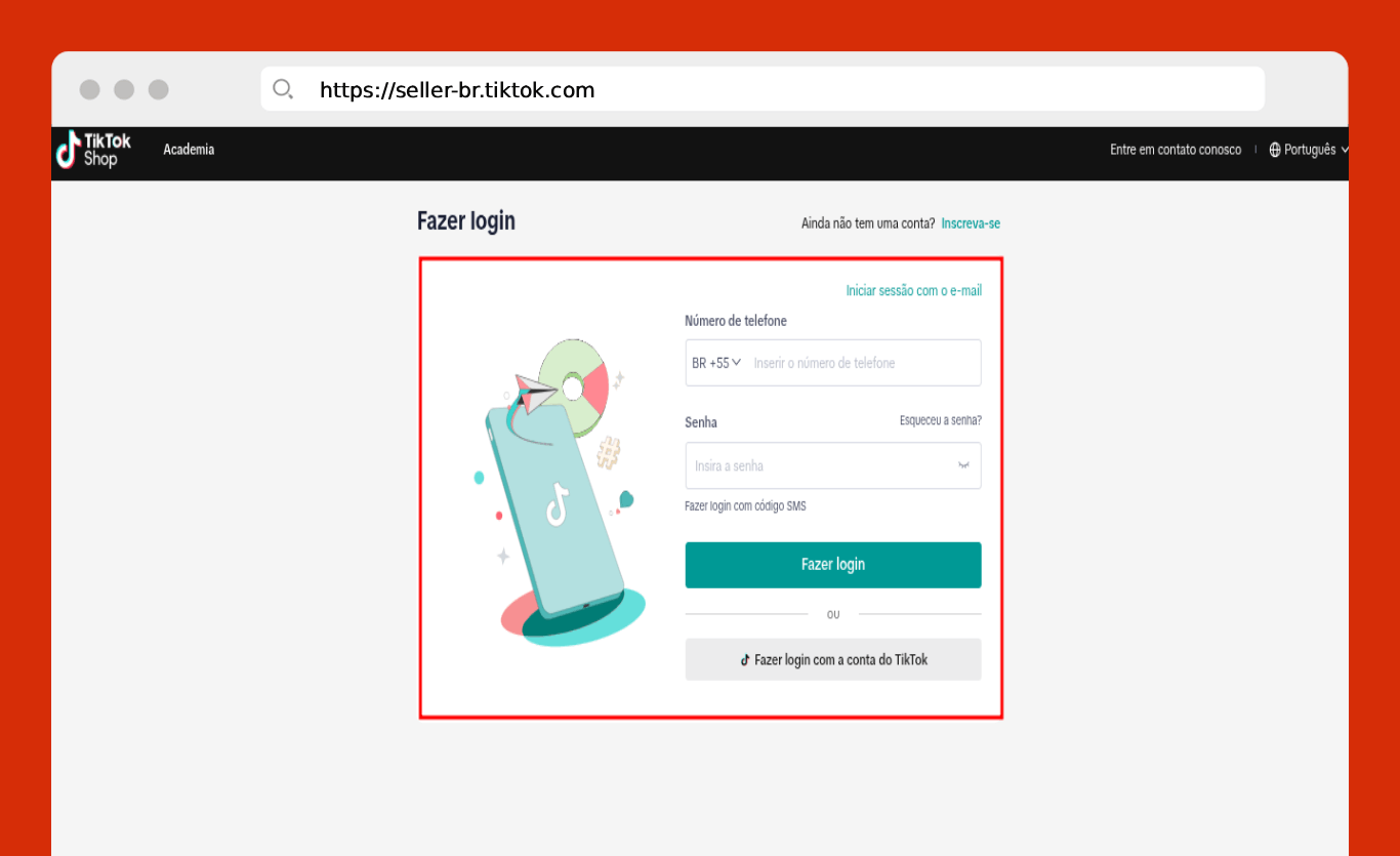 Passo 09) Ao clicar em Autorizar no passo anterior, você será redirecionado para logar na sua conta da TiktokShop.