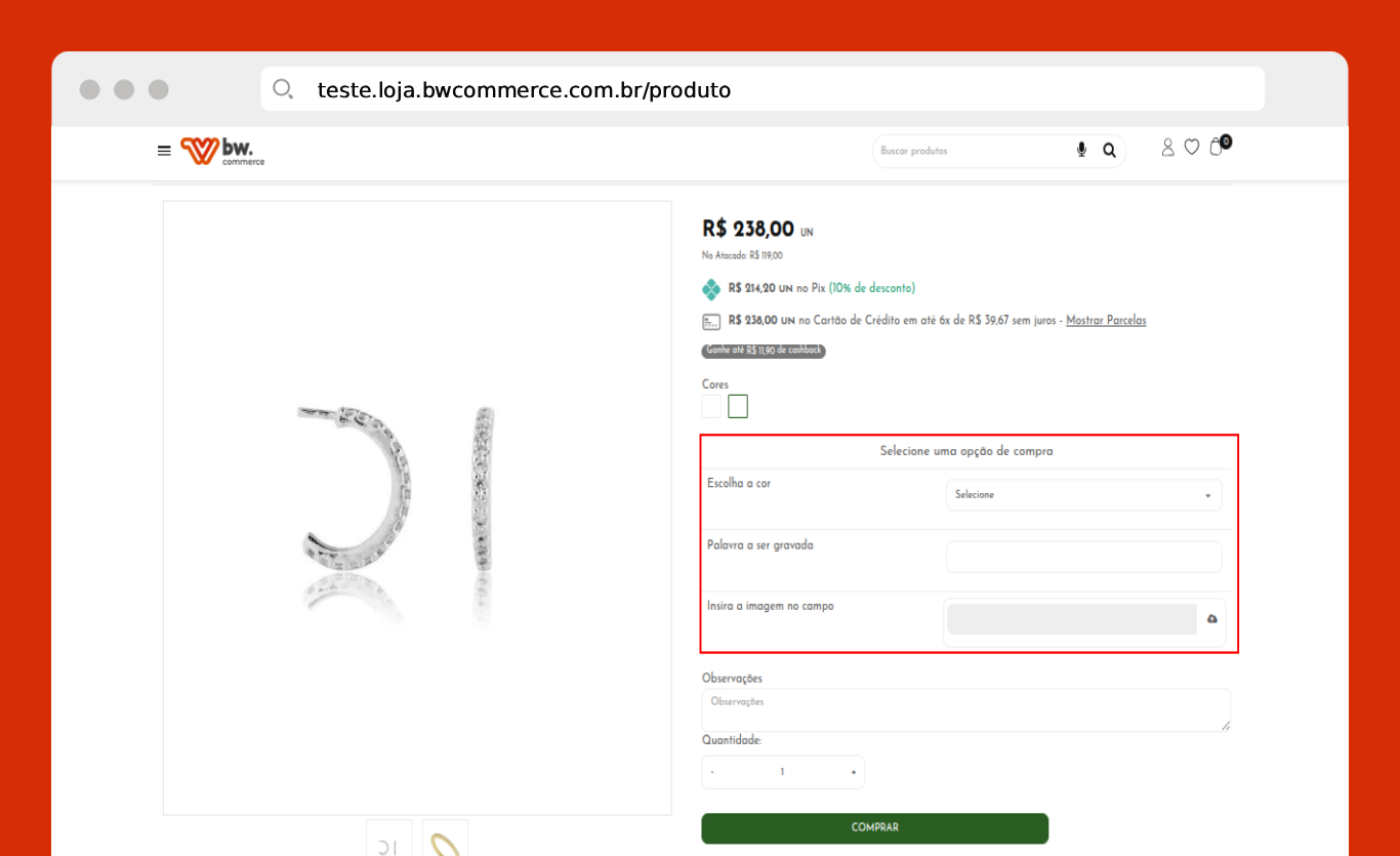 Caso você venda produtos que podem ser personalizados, como por exemplo colares, alianças com nomes gravados ou até mesmo camisetas, este é o recurso recomendado para utilizar em sua loja virtual.