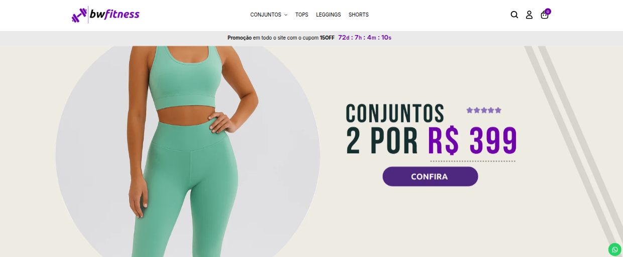 O tema Bw Fitness possui um design dinâmico e energizante focado em performance para impulsionar suas vendas de roupas e acessórios esportivos.